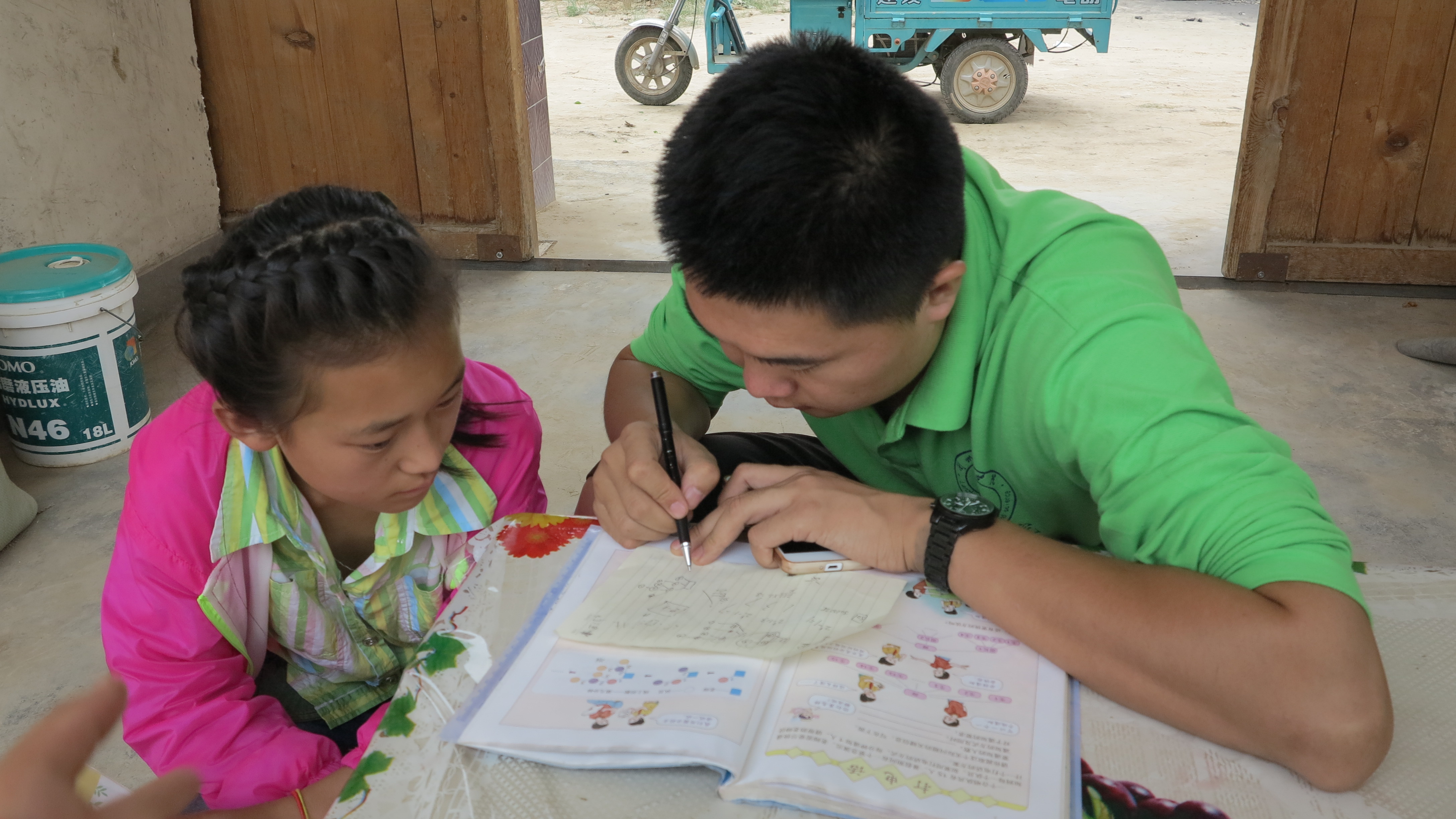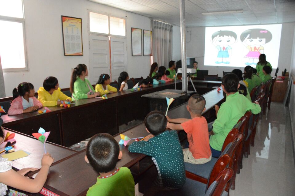 小分队成员首先两人一组入户对小学生的暑期作业进行辅导。通过面对面的交流,一对一的教学辅导,帮助孩子们解决了很多学习上的困难。下午4点10分,小分队的同学们组织开展了“品读经典 传承仁义礼智信”国学大讲堂活动,通过PPT、小故事、抢答等方式对“诚信、仁义、孝悌、友善”等方面的国学知识进行了讲解,并让每个小朋友谈了自己的收获和感想。下午5点10分,小分队的同学们又开展了诗朗诵教学活动,教学内容以小学生课本的唐诗为主,重点围绕诗朗诵时的发音、情感、节奏等方面进行,并通过游戏的形式与孩子们进行交流互动,让孩子们在轻松愉快的环境中巩固所学知识。