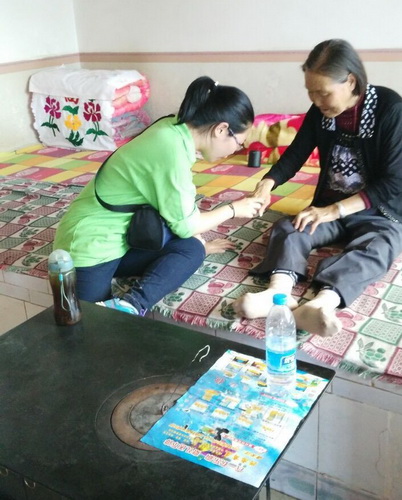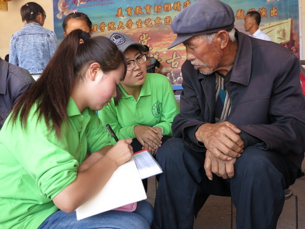 小分队成员4人一组分成三个小组针对留守老人的生活、留守儿童的教育问题进行走访调查。走访过程中,同学们发现很多年轻人都在外打工,孩子留在家里由老人照顾。第二小组的同学们进入一户农家。这户村民是一对70多岁的老俩口,老奶奶腿脚不便,需要坐轮椅才能行动。据了解,老两口有三儿一女,女儿已外嫁,三个儿子都住在附近,儿子女儿都有孩子,老人可以说是儿孙满堂,但是儿女们给予老人的照顾却是十分有限。看到小组成员进入家里,老人非常的高兴。小组成员帮老人收拾屋子,陪着老奶奶聊天,了解老人的生活情况。孩子的教育问题是老人最担心的,因为父母长期在外打工,孩子得不到父母的关爱和照顾,导致亲情缺失,儿童缺少情感和心理关怀,缺少倾诉和寻求帮助的对象,出现情感冷漠、与外界不愿意接触等现象。
