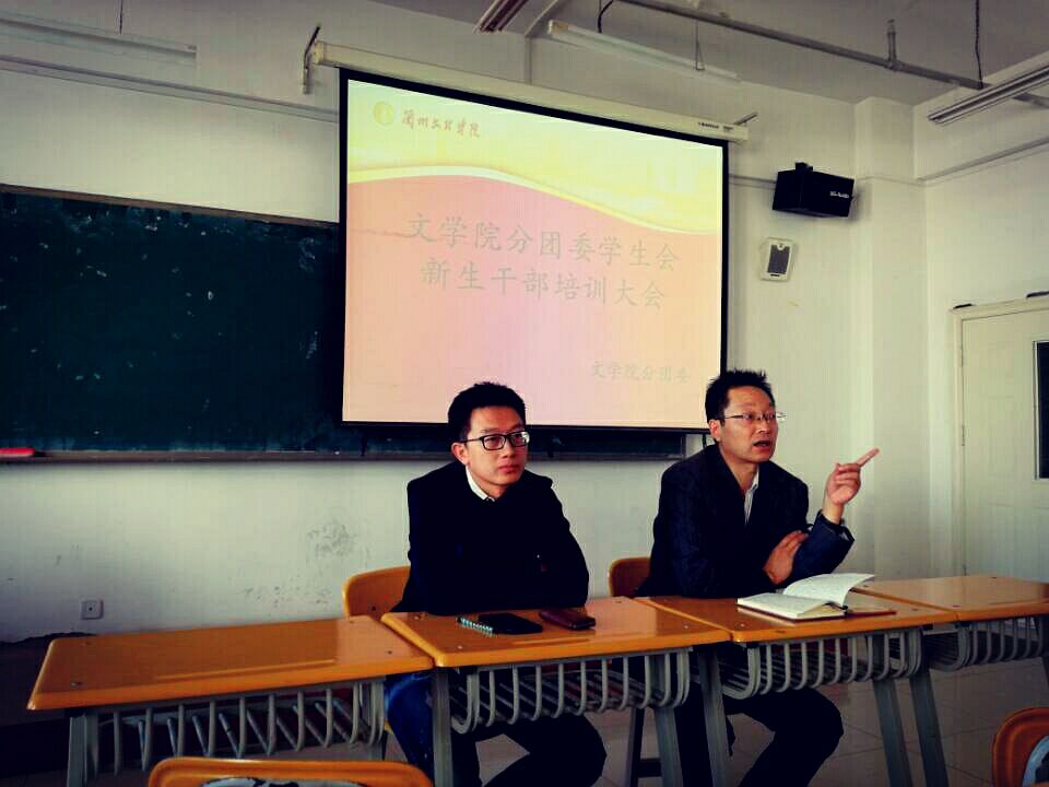 2016年10月28日中午1时,yl23455永利官网分团委学生会在1号教学楼504教室召开新生干部培训大会,yl23455永利官网党总支副书记、副院长张彦荣和分团委书记孟煜杰老师出席本次大会。