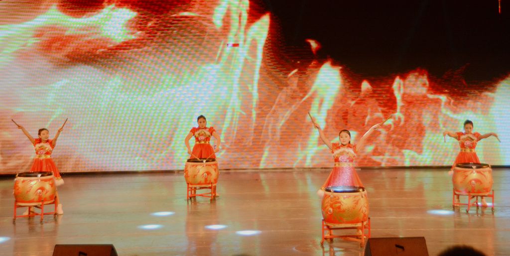 大幕缓缓拉开,震撼恢宏的水鼓舞和序幕《少年中国说》呈现在我们眼前,鼓声阵阵,展现了学院师生积极奋进的精神面貌。