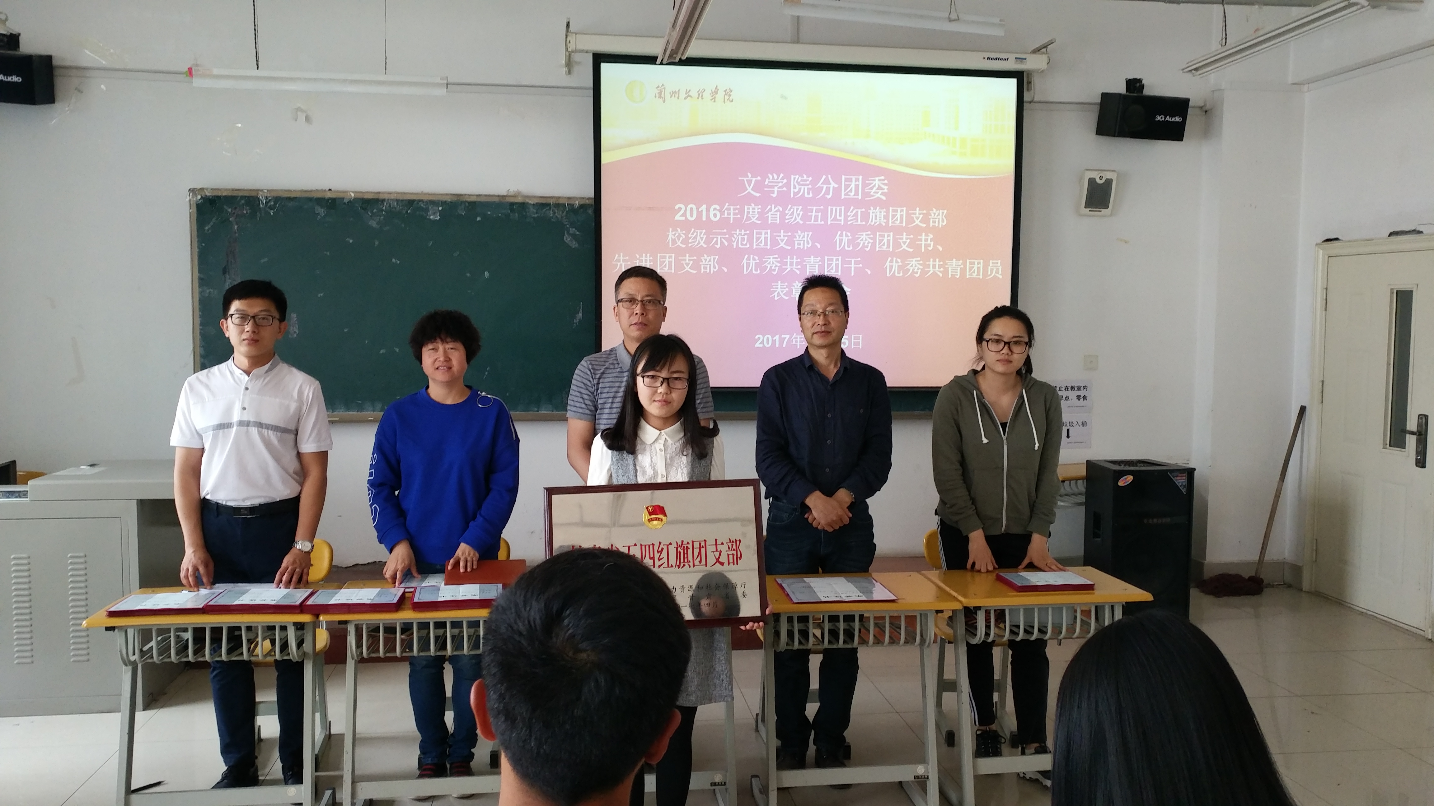 会上,孟煜杰老师代表yl23455永利官网分团委对2016年度省级、校级先进单位和个人的评选要求、审批程序等情况向大会做了汇报,并宣读了表彰决定:yl23455永利官网2014级汉语言文学二班团支部荣获甘肃省“五四红旗团支部”荣誉称号;2015级汉语言文学一班团支部荣获我校“示范团支部”荣誉称号,团支书周生韬同学荣获我校“优秀团支书”荣誉称号;2015级汉语言文学一班和二班荣获 “先进团支部”荣誉称号;杨凡毅等6名同学荣获 “优秀共青团干”荣誉称号;陶芙蓉等32名同学荣获 “优秀共青团员”荣誉称号。