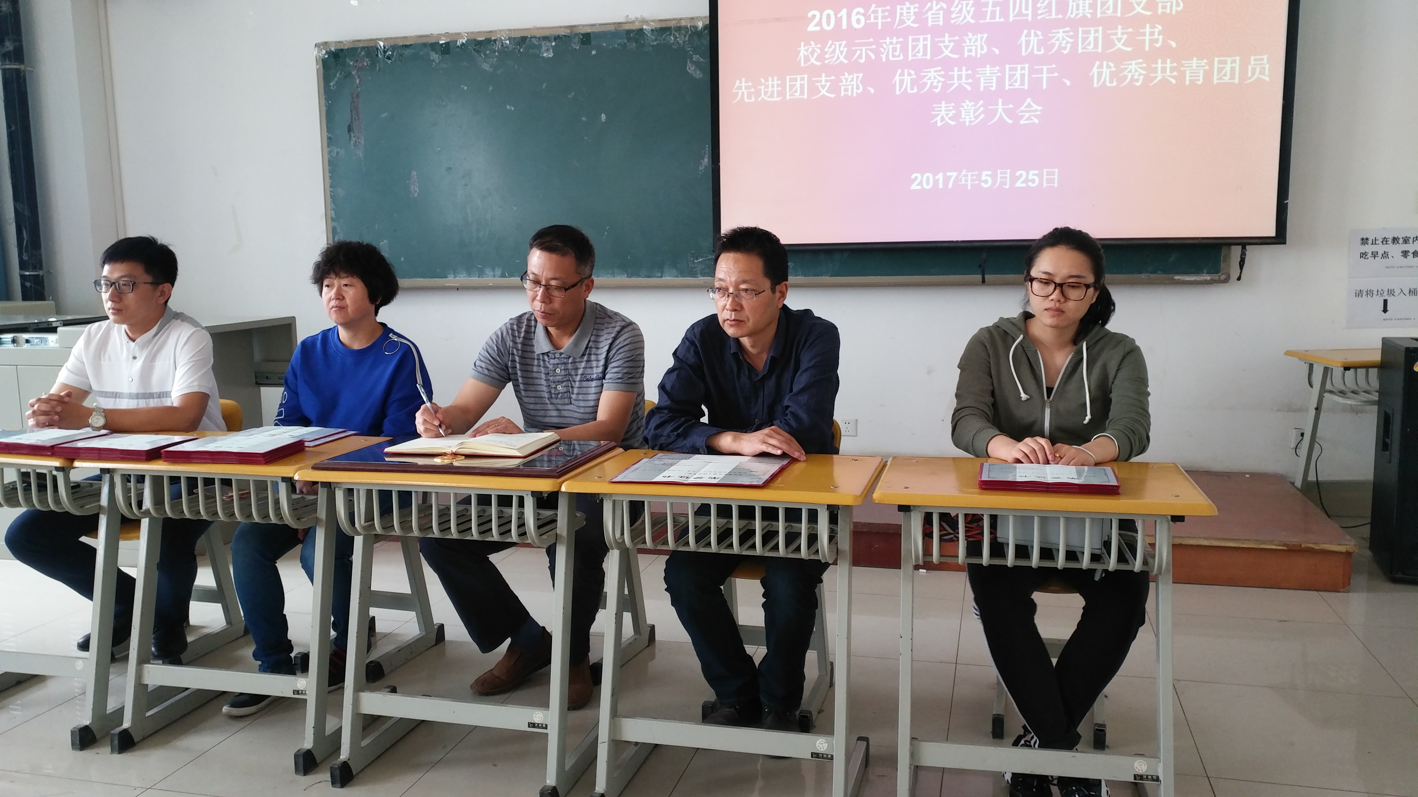 5月25日中午1点,yl23455永利官网分团委在1-504教室召开2016年度五四表彰大会,学院党总支书记凌毅,副书记、副院长张彦荣,学工办主任张春霓,分团委书记孟煜杰,辅导员王诗如,受表彰班集体和个人,及全体分团委学生会干部参加了此次会议。