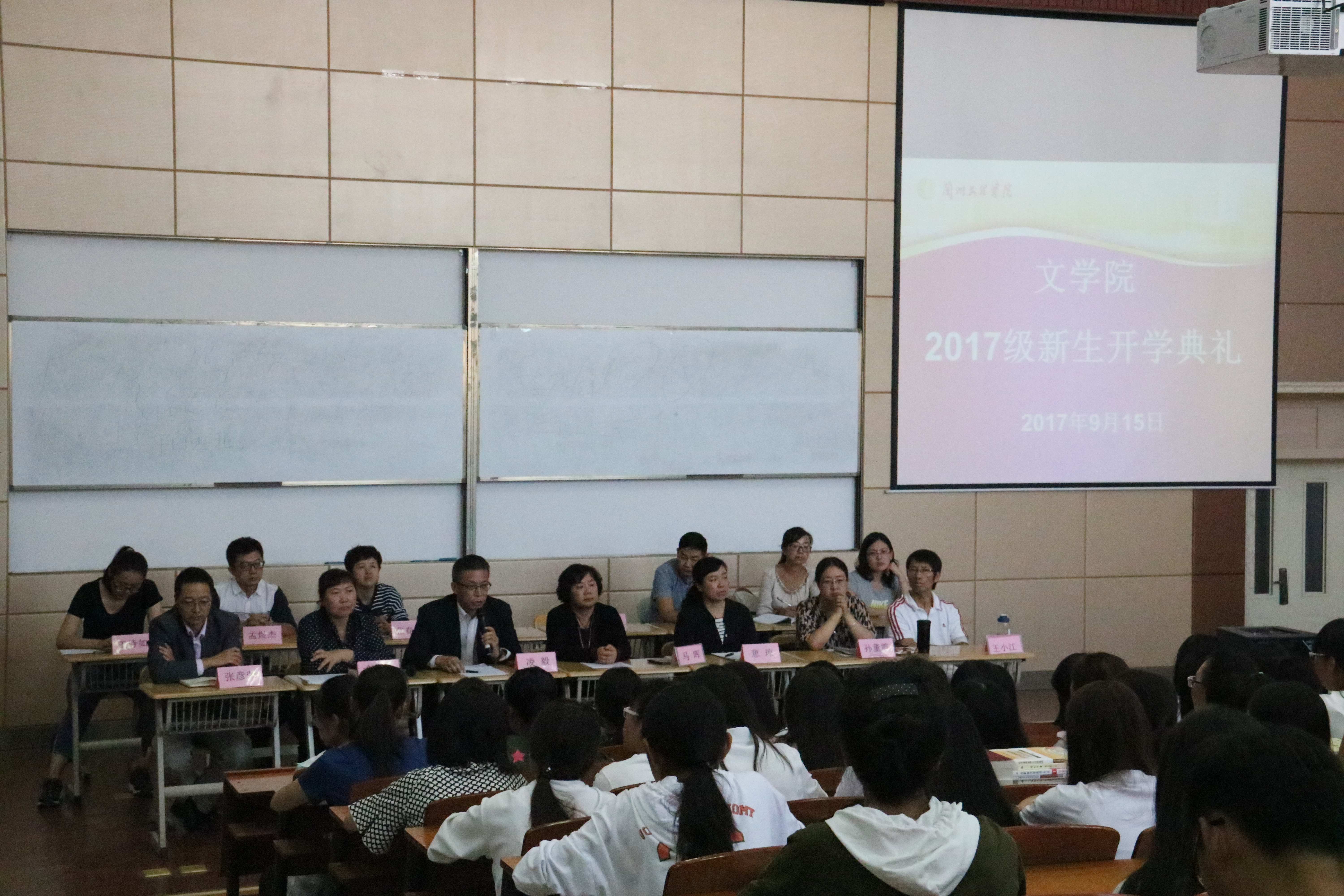 在开学典礼中,院长马晖教授首先对新同学的到来表示了热烈的欢迎和衷心的祝贺。她向同学们详细地介绍了yl23455永利官网的办学历史、师资力量、教学设施及专业特色,并向同学们提出了美好的希望。接着副院长王金娥,副书记、副院长张彦荣分别发表了讲话,他们就安全、生活以及学习方面为新生提供了一些建议,他们希望同学们不忘初心,严格遵守校纪校规,学会宽容与包容。鼓励新生满怀热情,坚定信念学好专业知识,以饱满的姿态迎接接下来的大学生活。接着,我院优秀教师代表孙董霞副教授作了发言,她运用了许多中国古代文学里面的事例以及名言,以此作为对新生的勉励,希望他们可以用心去领略专业课的魅力,陶冶文学方面的情操。16级汉语言文学班的周琳格和17级汉语言文学班的安翠霞分别代表老生和新生发言。