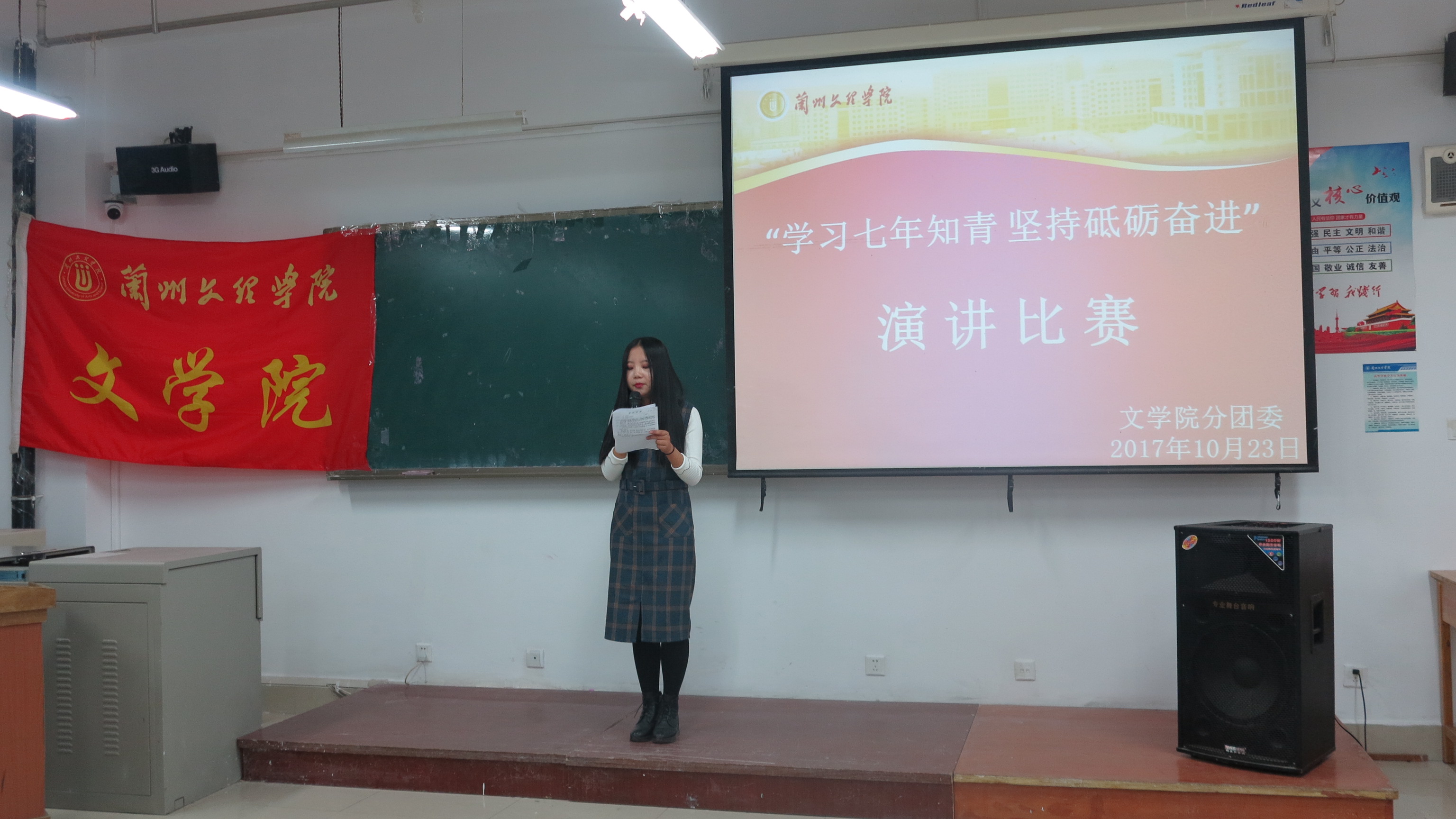 为贯彻落实校团委《关于在全校共青团组织中深入开展<习近平的七年知青岁月>学习活动的通知》的文件精神,推动 “一学一做”学习教育常态化、制度化,引导广大团干部、团员青年牢固树立政治意识、大局意识、核心意识、看齐意识和志存高远、脚踏实地、勇于创新、锐意进取的人生观、价值观、世界观,201710231930分,yl23455永利官网分团委在1号楼504教室举办了学习《习近平的七年知青岁月》主题演讲比赛,16名参赛选手及各班近100名同学参加了此次活动,活动由分团委组织部部长马思静主持。