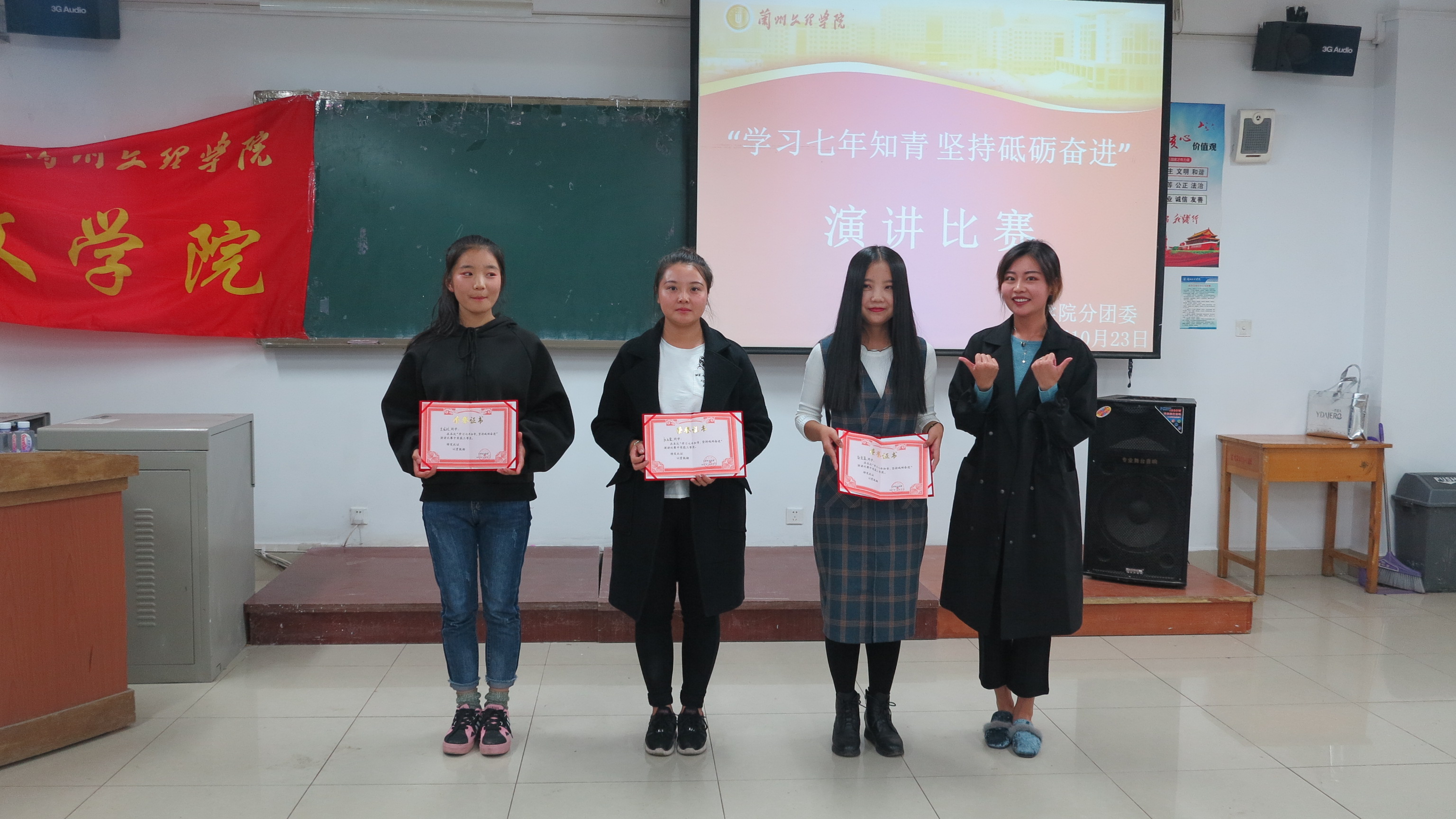 为贯彻落实校团委《关于在全校共青团组织中深入开展<习近平的七年知青岁月>学习活动的通知》的文件精神,推动 “一学一做”学习教育常态化、制度化,引导广大团干部、团员青年牢固树立政治意识、大局意识、核心意识、看齐意识和志存高远、脚踏实地、勇于创新、锐意进取的人生观、价值观、世界观,2017年10月23日19时30分,yl23455永利官网分团委在1号楼504教室举办了学习《习近平的七年知青岁月》主题演讲比赛,16名参赛选手及各班近100名同学参加了此次活动,活动由分团委组织部部长马思静主持。