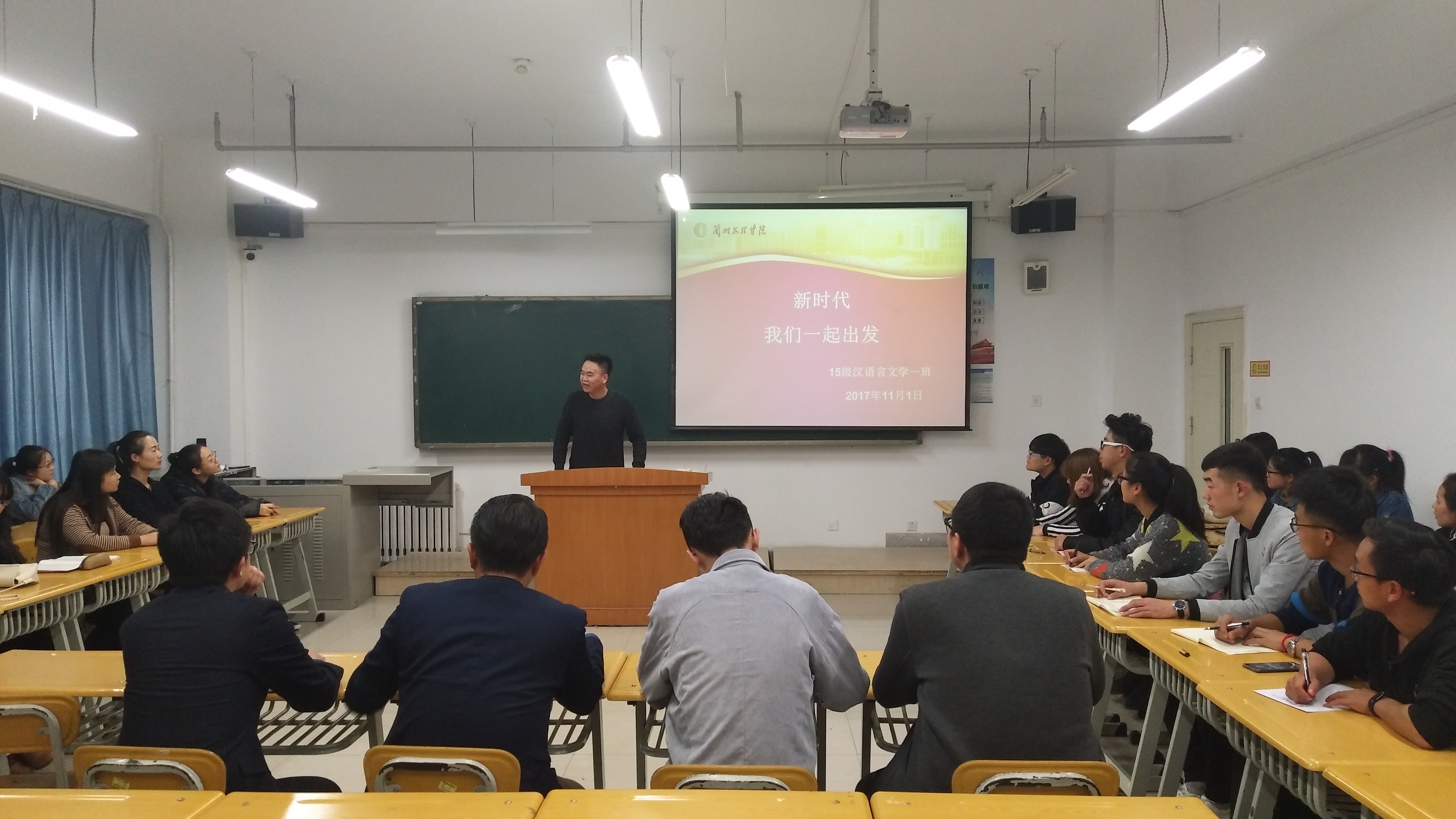 随后,孙书记一行来到15级汉语言文学一班团支部参加了以《新时代,我们一起出发》为主题的十九大精神学习交流会。活动中,全体同学一同观看了十九大报告视频节选,接着余成成等6位同学根据近期对十九大精神的学习情况和自身的所感所悟进行了交流发言,纷纷表示:习近平总书记的报告是我党全局性、战略性、前瞻性的行动纲领,标志着中国特色社会主义迈上了新的征程,展现了中华民族伟大复兴的新前景。我们作为青年一代,一定要不忘初心,跟党走,牢记使命,奋发图强,决胜全面建成小康社会,夺取新时代中国特色社会主义伟大胜利,为实现中华民族伟大复兴的中国梦不懈奋斗!孙书记对大家的发言表示赞赏,希望大家继续深入学习十九大精神和习近平总书记系列重要讲话精神,增强对以习近平同志为核心的党中央治国理政新理念新思想新战略的理解,听党话,跟党走,努力学习专业知识,树立正确的价值观,人生观,世界观,做一个奋发向上、积极进取的有为青年。