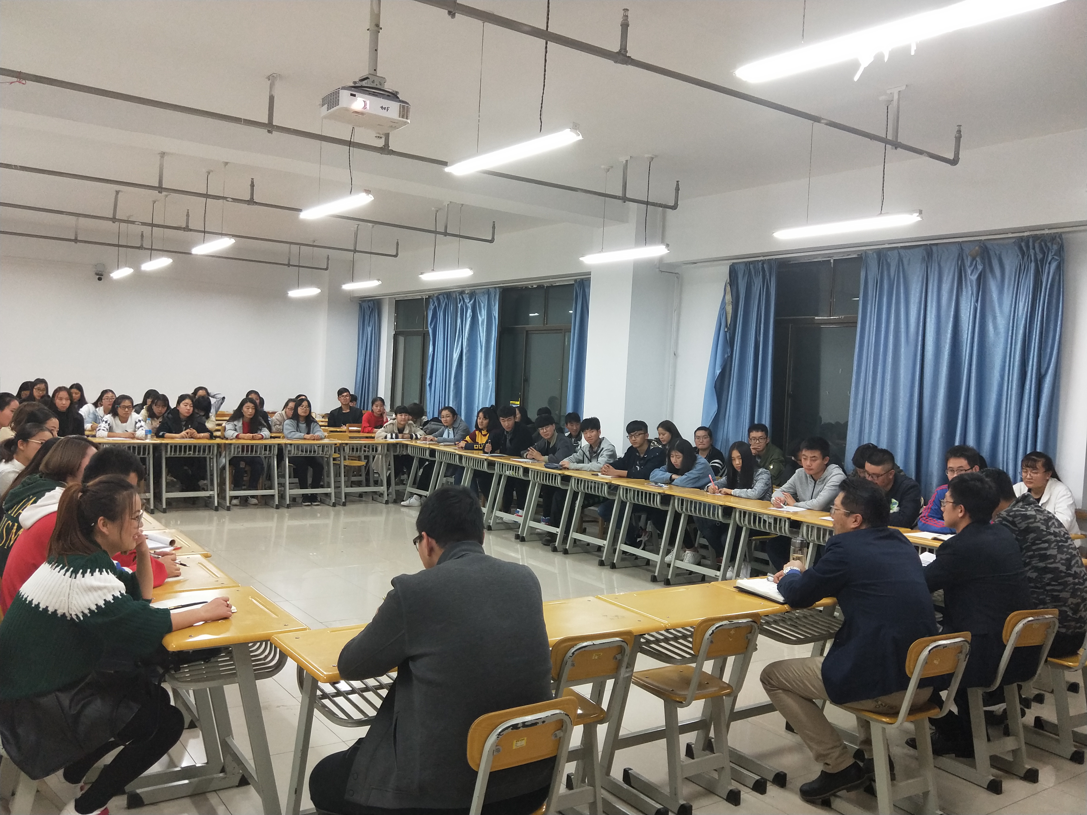 11月1日晚7点,校团委书记孙亮到yl23455永利官网分团委开展“一学一做”教育实践主题调研暨“1+100”团干部直接联系青年工作,yl23455永利官网分团委副书记孟煜杰、yl23455永利官网全体学生会干部及17级各班班委70余人在1—504教室参加了此次活动。