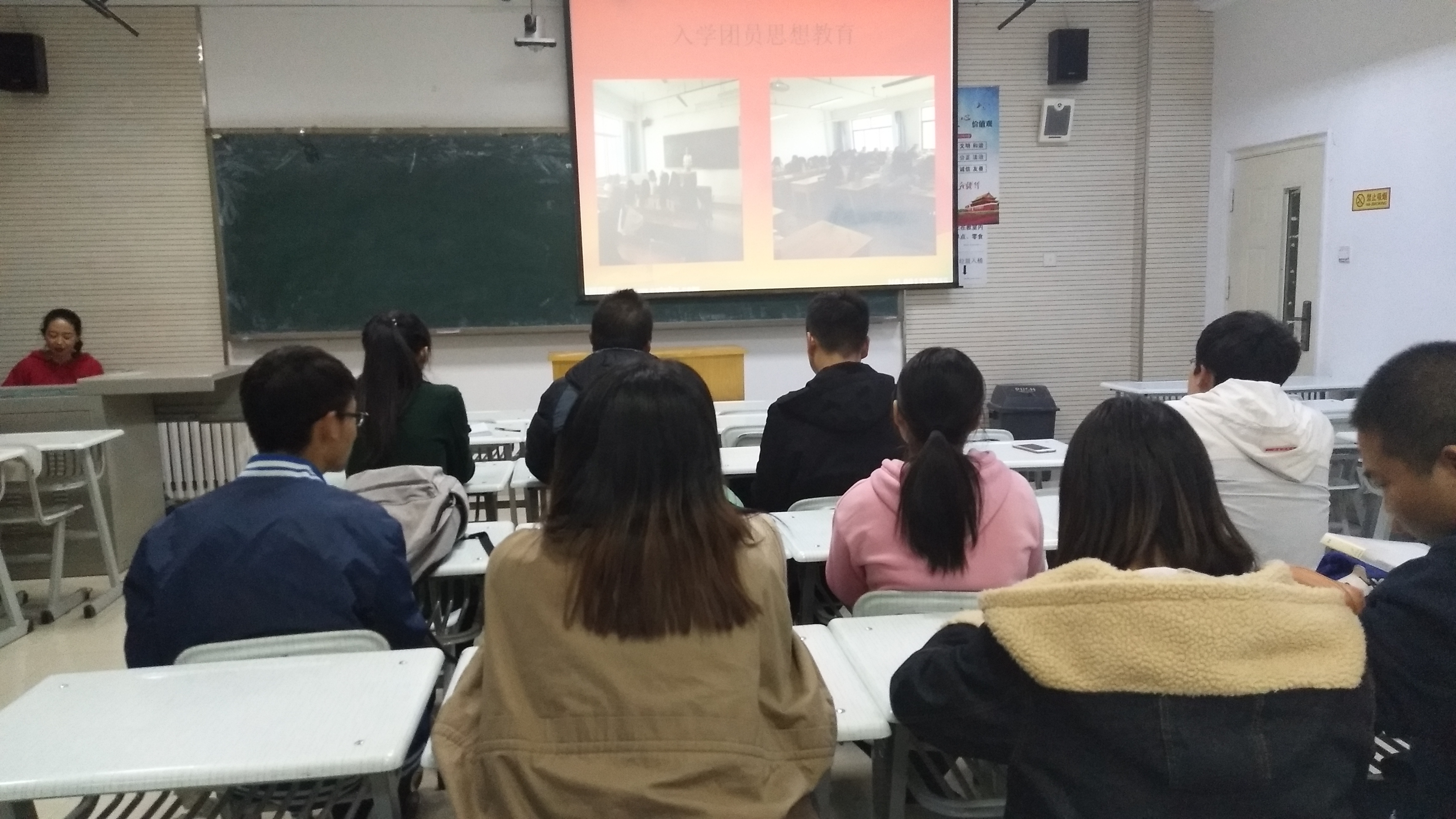 评选采用ppt汇报的形式,每位团支书分别从团员参与、组织运行、工作开展、思想建设等多方面详细地汇报了支部近一年的工作实效和取得的成果。各位团支书在现场流利的语言表达、生动精彩的图片解说,展示了如雷锋日进行校园卫生大扫除等丰富饱满的实践活动。也有结合专业排演话剧《茶馆》《驴得水》等节目,突出了各团支部的特色和优势,将魅力风采展现得淋漓尽致。