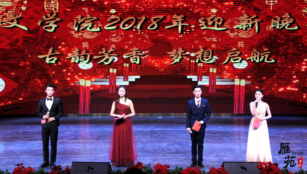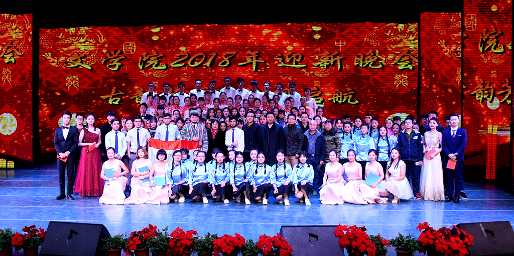 随着舞台大幕的缓缓拉开,开场舞《中国龙》气势如虹,用鲜艳的中国红,点亮了全场。鼓声阵阵,是中华儿女的呐喊,条条巨龙,展现了中华民族的气节;17级汉语言二班的带来了朗诵《丝路赞歌》,同学们通过深情朗诵,表达了对丝路的赞美与热爱,感染了台下每一位观众;青春无限,激情飞扬,15级文秘班同学带来的现代舞《Carnival》,彰显了他们的活力与自信;相声是一种既经典又能巧妙地结合现代生活的艺术表演形式,17级汉语言3班两位男同学的相声《众口难调》,用诙谐幽默的语言,给大家送来了新春的欢乐;17级文秘班的同学带来了合唱《大中国》,同学们用歌声来抒发着对祖国母亲的爱恋;舞蹈《粉墨》,向我们展现着中国古典美韵;欣赏了中国古典舞蹈的婀娜多姿,17级文秘班的同学带来的舞蹈《阿拉伯之夜》展现出独特的异域风情,同学们用热情活力的舞姿让我们仿佛置身于拥有迷人风情的异域;艺馨话剧社带来的小品《高考甄嬛》,将甄嬛体与高考这一热点话题结合起来,诙谐幽默中揭示同学们对高考的感悟;歌伴舞《天耀中华》通过男女对唱,伴以优美动人的舞蹈,深切的表达了同学们对祖国的敬爱之情;经典话剧《雷雨选段》,表达了17级戏剧影视文学班的同学对《雷雨》这部经典著作的感悟;16级戏剧影视文学班的同学则带来了的舞蹈串烧《哎舞哟舞》,同学们充满青春活力,用靓丽的舞姿展现了青年人的激情;接下来是16级汉语言三班的同学带来的相声《巧对对联》,两位女同学妙语连珠,展现出中国优秀传统文化的独特魅力;欣赏过了中华文化的博大精深,由我校留学生带来的精彩舞蹈表演《Chinu chin》则带我们走出国门,领略了异国他乡绚丽多姿的民族文化;网络歌曲陪着很多人度过了青春时代,16级汉语言1班同学带来的舞蹈《燕归巢》,则将曼妙的舞姿融入我们熟悉的歌曲,给人耳目一新的感受;舞蹈《美落子》和《茉莉花》,同学们用柔美的舞姿,让我们领略了中国南北方不同的民族文化。