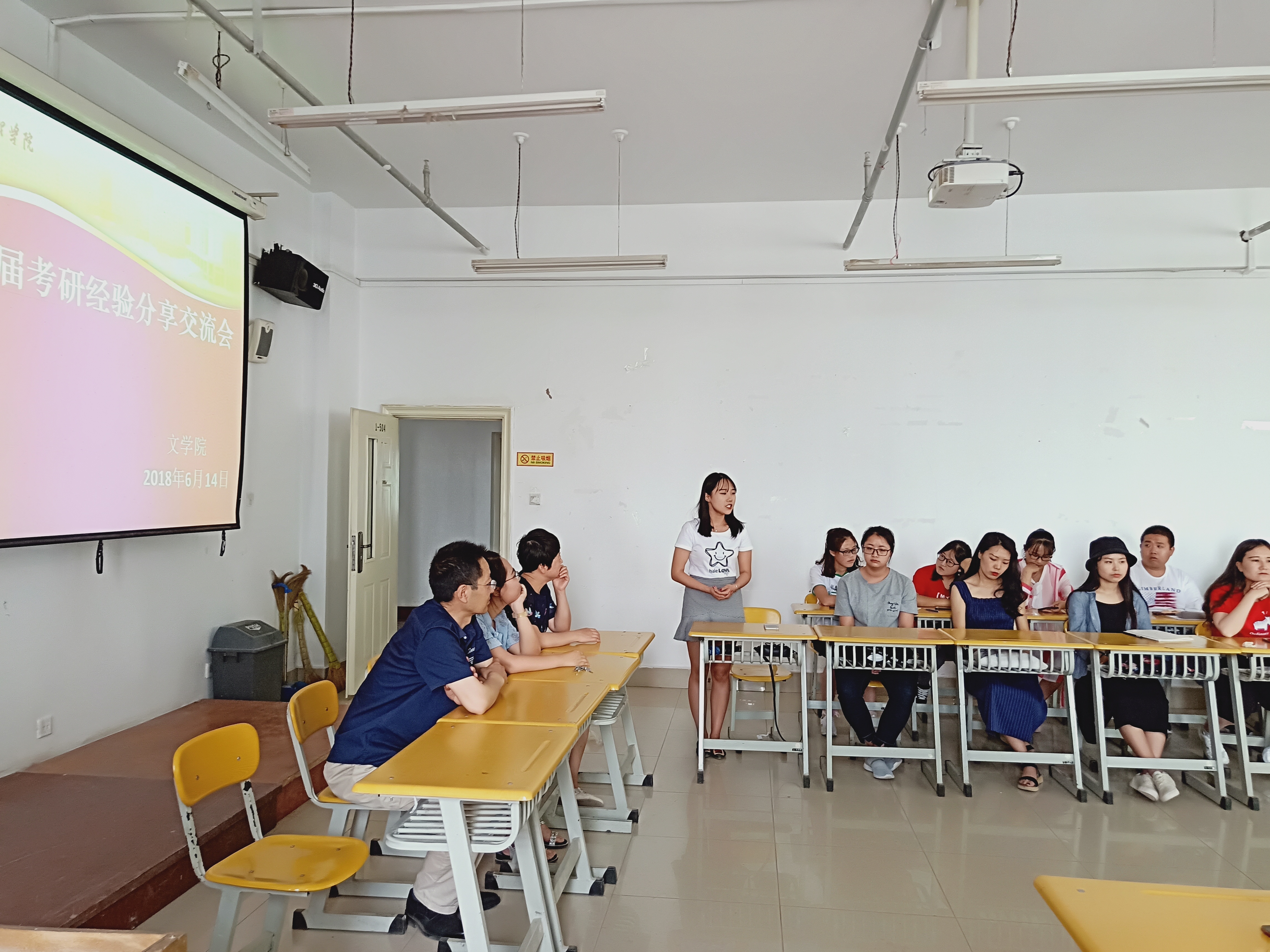 为了进一步提高我院考研学生的考研热情,明确考研目标,掌握考研方法,了解更多考研信息, 首先,副院长张彦荣作了简要讲话。他对14级考研学生取得的优异成绩给予了充分肯定,接着深入分析了当下的考研形势 ,并鼓励同学们努力拼搏,积极考研。 在交流分享会上,考上研究生的同学从个人考研经历出发,围绕如何选取专业和院校、制定复习计划、调整心态以及复试中的注意事项等方面谈了自己的亲生体验和感受。强调选取专业和院校时不能盲从,并建议同学们不要只局限于与考研专业相关的书籍,应多读不同类型的书,拓宽视野。 之后自由提问阶段,大家就如何选择考研专业,选择什么样的培训班以及复习备战过程中遇到的方方面面的问题向毕业生们寻求意见建议,她们耐心地为同学们做了解答,并且还向学弟、学妹们推荐了一些优秀的教辅资料。 最后,奂菲老师做了总结发言,希望有志于考研的同学及早做好人生规划,以认真踏实的态度、迎难而上的品格、坚持不懈的努力走上考研成功路。 (撰稿人:赵玉 摄影:杜雨)