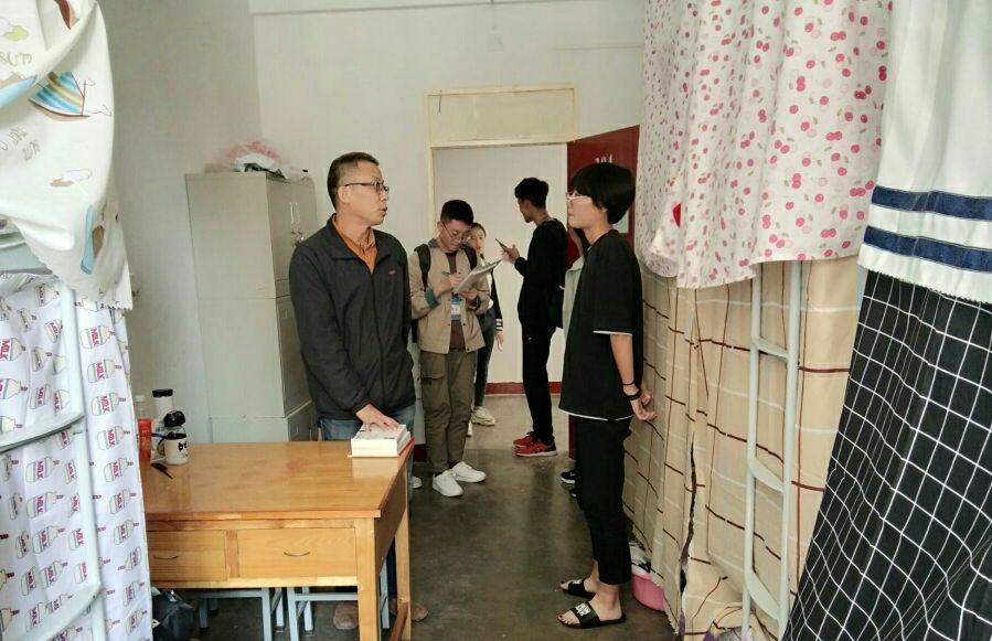 凌书记和老师们首先对学院大二至大四宿舍进行了检查,在检查过程中,凌书记叮嘱学生要加强宿舍安全防范意识,保持宿舍卫生整洁,合理安排作息时间,同学们要相互帮助,形成良好的舍风、学风。