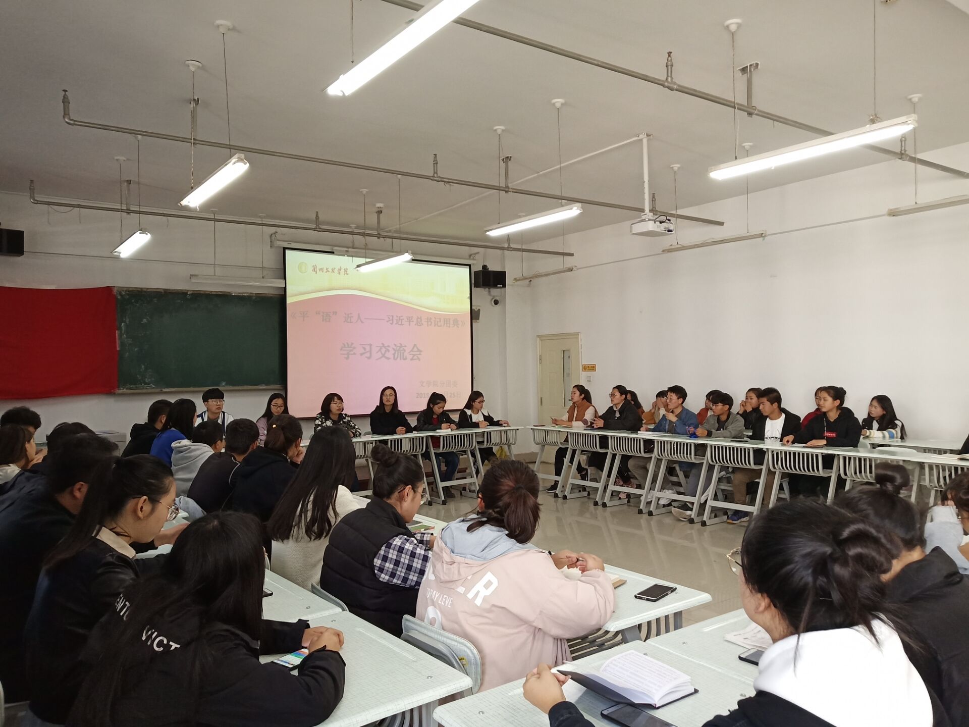 为了鼓励文理学子从习近平总书记的一言一语中汲取精神力量以增强信心,将学习作为责任和终身追求,以提高自我的知识素养和精神素养,坚定自己的理想信念。2018年10月29日13点,yl23455永利官网分团委组织了“平语近人——习近平总书记用典”座谈会,参加此次活动的有yl23455永利官网辅导员奂菲老师,yl23455永利官网学生会各部门部长以及各班级班委、团支书和2018年上半年入党积极分子。 会议开始,由yl23455永利官网辅导员奂菲老师讲话,她提出我们应该跟紧习近平总书记的步伐,认真学习平“语”近人理念,紧接着组织大家观看《平“语”近人》第八集“腹有诗书气自华”。影片从“学如弓弩,才如箭镞”这个层面解读习近平总书记关于“劝学”的论述,将国学经典与执政兴邦融为一体,让我们深感震撼和自豪。并通过习近平总书记在梁家村下乡时期开设扫盲班和送书给退休干部王宪平的事例来激励各位学子,使各位学子牢记,青年是学习的黄金时期,树立梦想应该从学习开始。最后,进入自由发言阶段,由在场的学生会干部及各班班委探讨对平“语”近人的理解,很好的升华了活动氛围,也坚定了各位学子的理想信念。天下兴旺,匹夫有责。作为当代大学生,我们有责任为我们的社会贡献自己的力量,途径就是读书,让阅读提升我们的思维,开拓我们的视野。 作为新时代的中国青年的我们,只有把自身的前途命运同国家和民族的前途命运紧紧联系在一起,努力为共同理想和目标而团结奋斗,中华民族伟大复兴才会在我们的奋斗中梦想成真。希望通过此次平“语”近人活动,能够努力营造yl23455永利官网的学习氛围,推动平“语”近人走进校园走进班级,走进每一位文理学子的心里,能够如习近平总书记所讲:“有志向、有梦想、爱学习、爱劳动、爱祖国。”