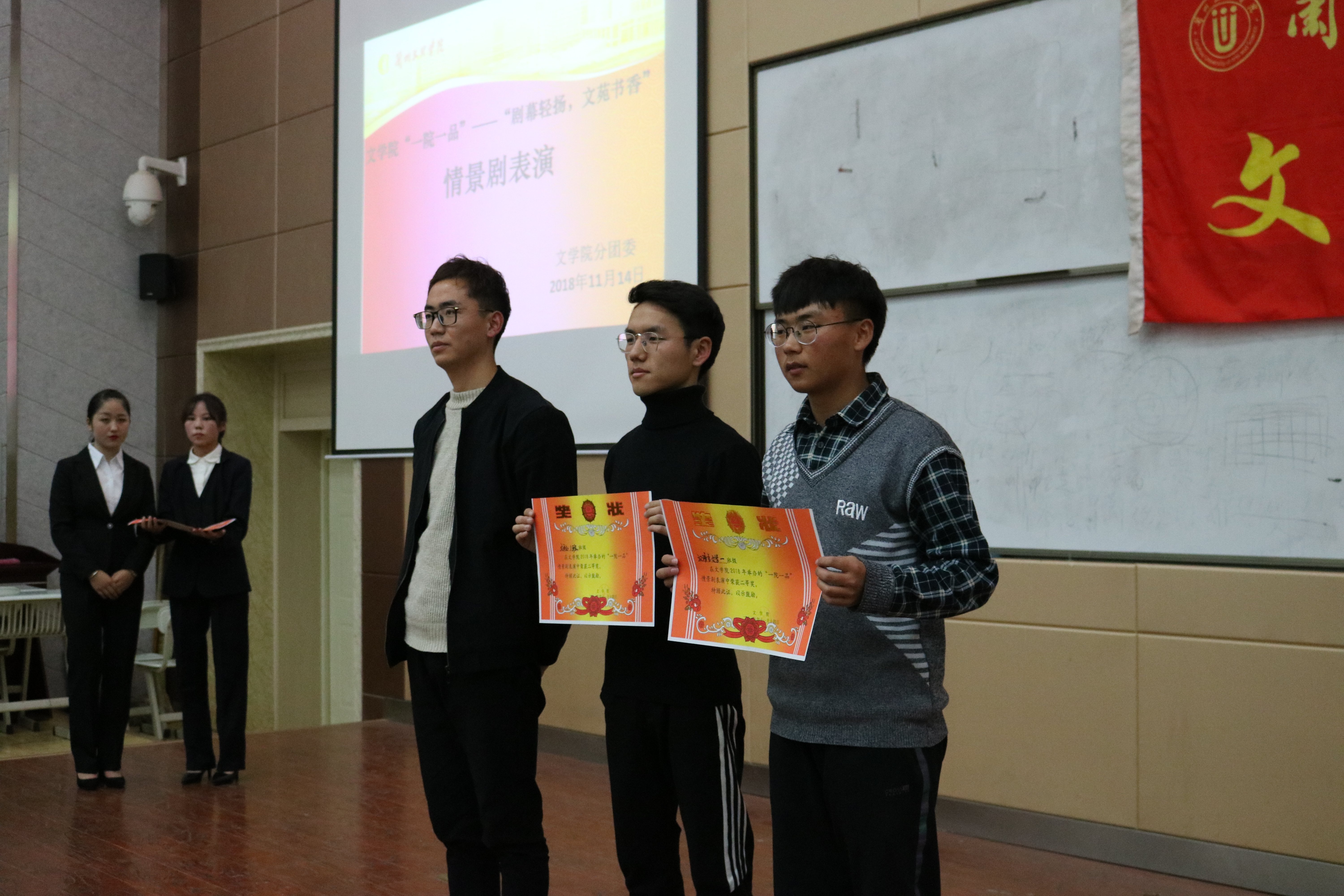 为贯彻落实习近平新时代中国特色社会主义思想,提高学生对理论理解与认识11月14日晚,yl23455永利官网分团委在综合楼205教室举“一院一品”——剧幕轻扬文苑书香情景剧大赛。参加此次比赛的有汉语言文学专业代表队、戏剧影视文学专业代表队、文化市场经营与管理(会展)专业代表队、文秘专业代表队等四支代表队