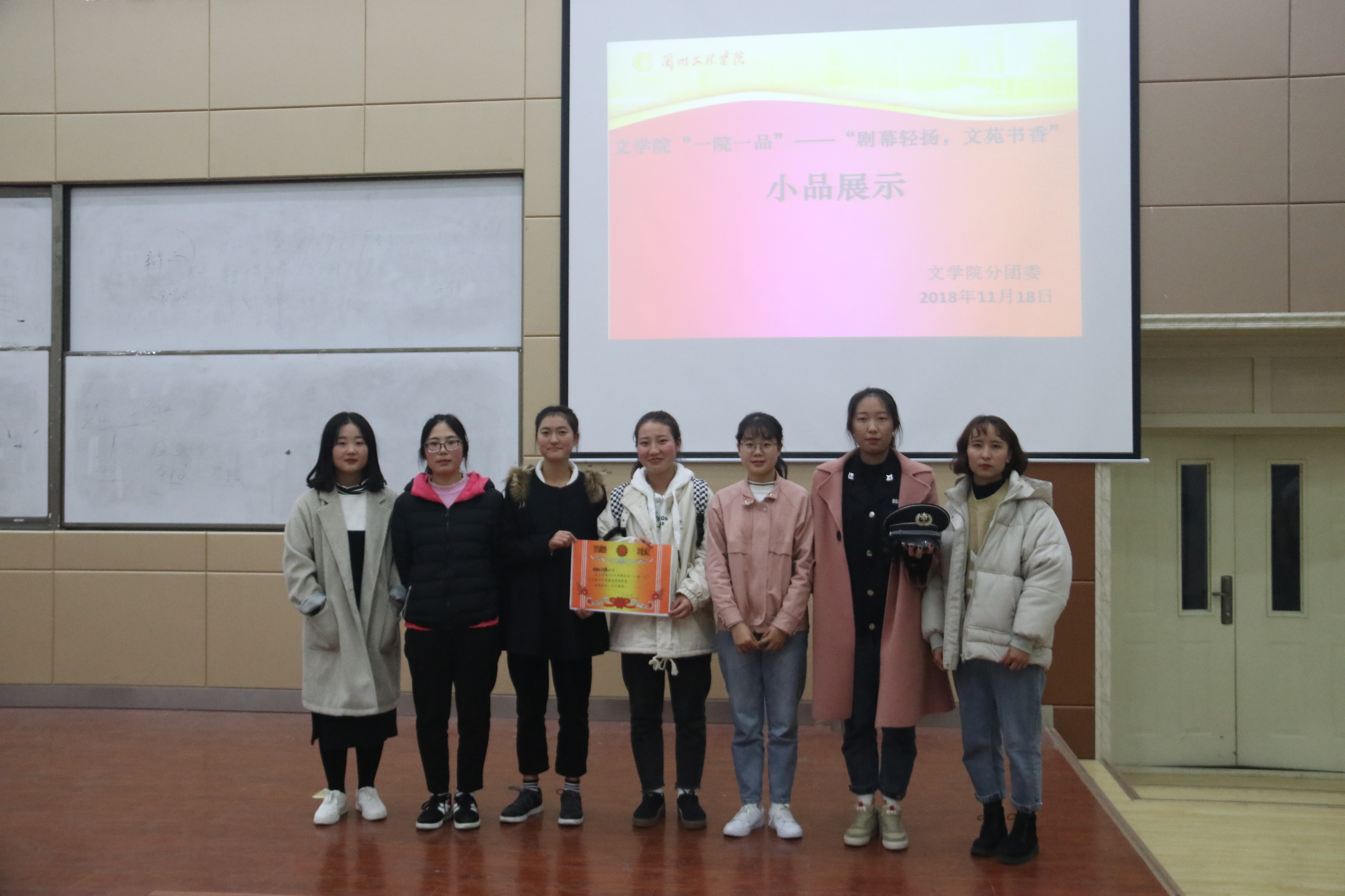 为丰富学生课余文化生活,营造有特色的校园文化氛围,yl23455永利官网学生会于11月18日晚上7点,在综合楼205教室举办了yl23455永利官网“一院一品”——“剧幕轻扬,文苑书香”小品表演大赛。参赛班级有18级汉语言文学1班、汉语言文学2班,汉语言文学3班、文秘班、文化市场经营与管理(会展)班以及戏剧影视文学班。