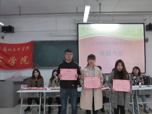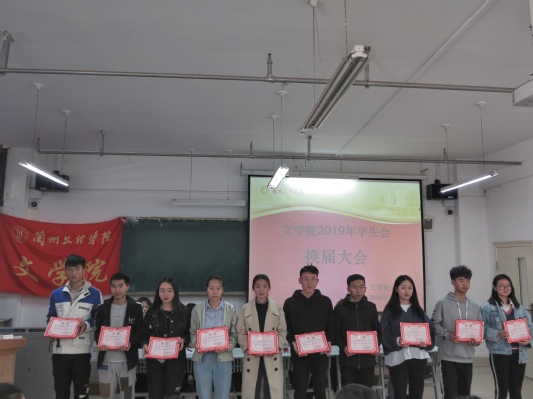 会上首先由上一届学生会主席许姗代表分团委学生会作2018年工作总结,她对学院领导、老师和同学们过去一年给予学生工作的帮助和支持表示感谢,并对新一届学生干部提出要求。随后奂菲老师和许姗同学分别宣读了新一届分团委、学生会干部名单,由院领导为新任学生干部颁发聘书并合影留念。随后,新一届学生会主席张旭代表全体新任学生干部发言,他从组织制度建设,内部团结协调,服务学生等多个方面谈了对今后工作的设想。