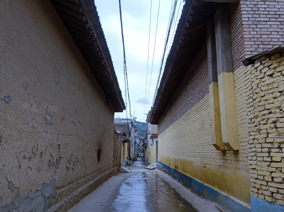 花牛镇高家湾是典型的城中村,居民点的房屋由当地居民自己修建而成,墙体粉刷成统一的黄色,上面没有宣传广告的大字也没有侮辱性的字句,整个街道整洁明亮,令人心旷神怡。且每隔三至五户设有专门的垃圾放置点,并有专门的人统一清理,我们到达的时候,下着小雨,空气湿润清新,弥漫着泥土的芳香,垃圾点没有堆积成山的垃圾,而是清理的干干净净,可见当地人对自己家园的爱惜。美中不足的是村子里的电线很低,乱作一团垂在屋前,稍微一踮脚就可以碰到,既影响村容又存在很大的安全隐患。但我们相信,美好的事物总会如期而至,环境治理是长久之计,不是急于求成。
