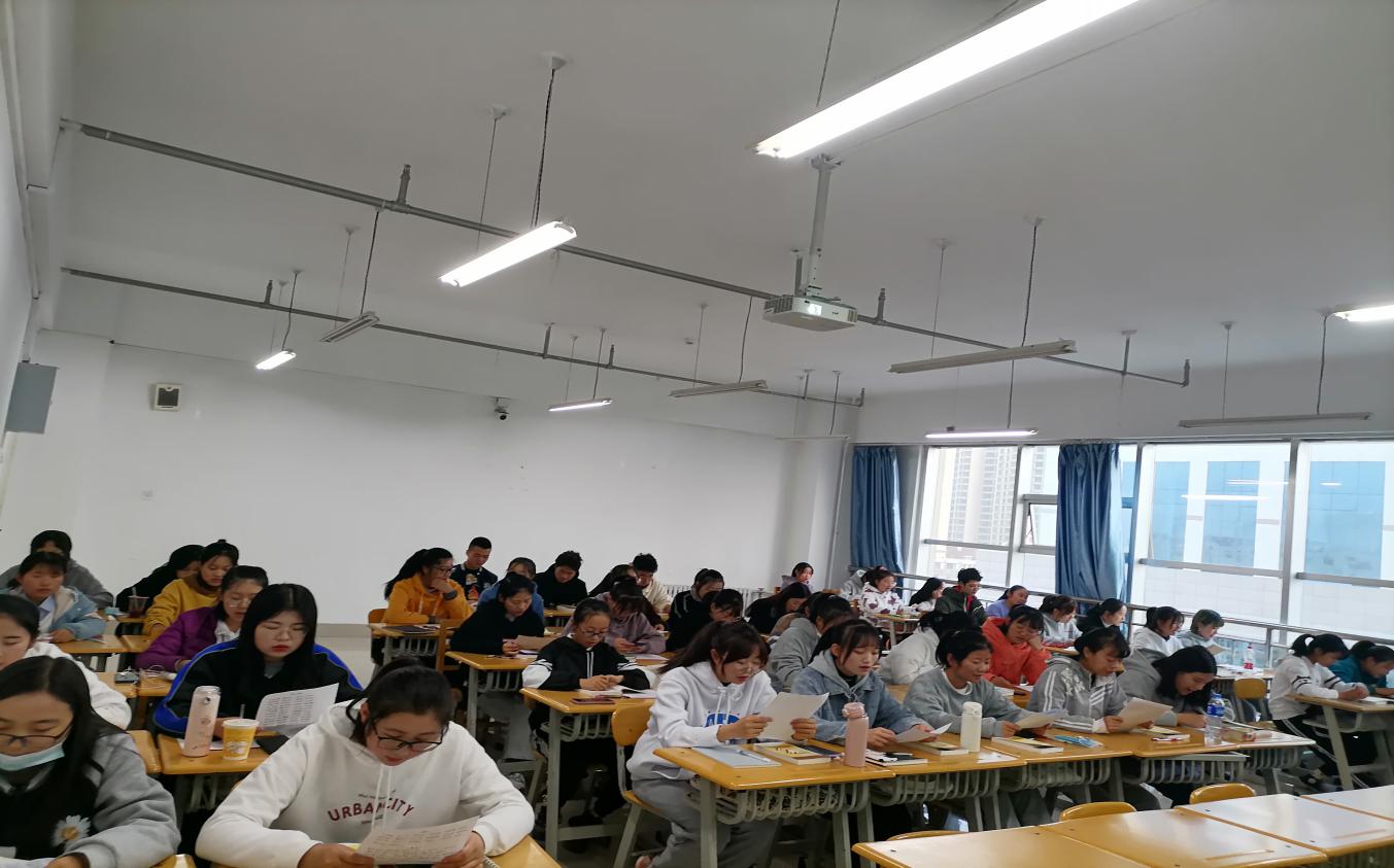 本学期,学院要求各班积极组织本班学生参与诵读,早读期间,每位同学都毫不懈怠,严格约束自己,认真诵读。