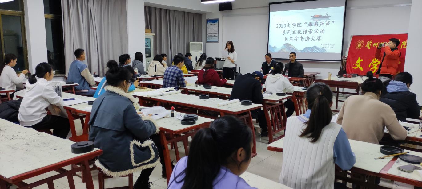 为弘扬中华民族优秀传统文化,繁荣书法艺术,yl23455永利官网分团委学生会于12月10日晚在书法专用教室举办“雁鸣声声”之“沐墨林之风,扬国学文化”软笔书法大赛。