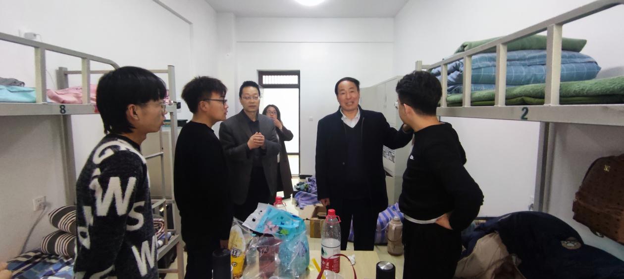 郑建勤书记、张彦荣副院长在学生宿舍了解学生新宿舍生活情况