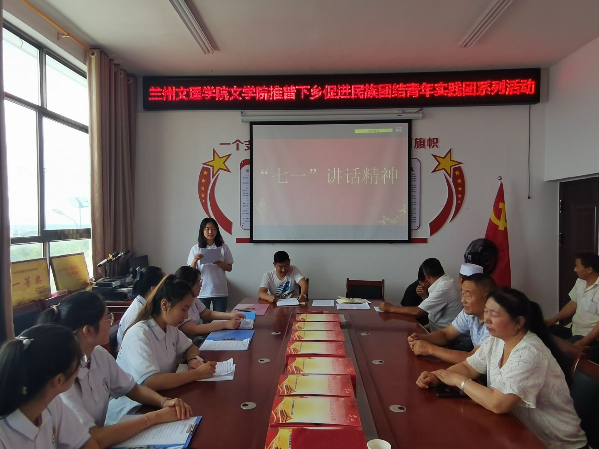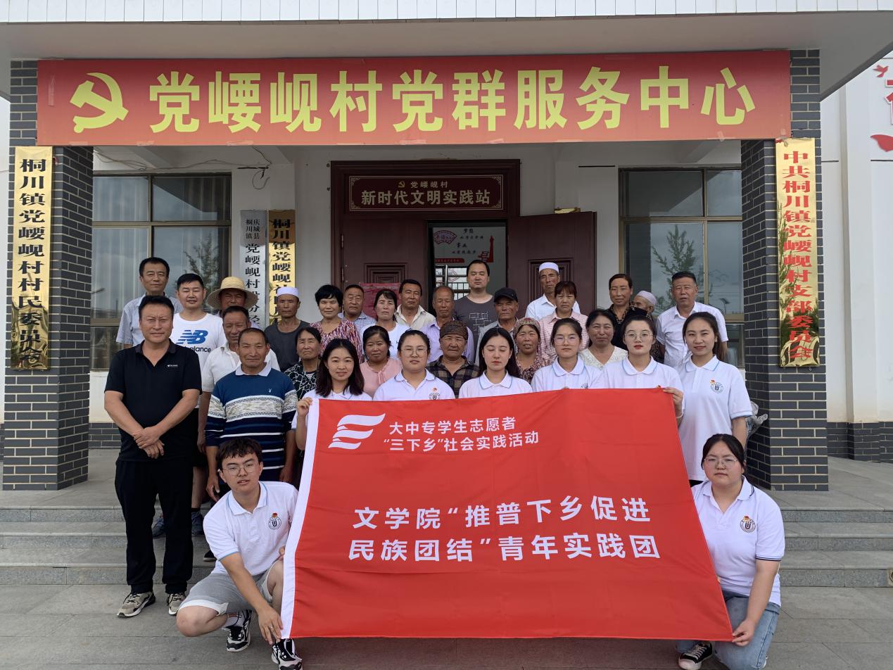 为学习宣传贯彻习近平总书记“七一”重要讲话精神,引导青年学生在社会实践中学党史、办实事,助力乡村振兴,7月19日,我校“推普下乡促进民族团结”青年实践团来到了学校帮扶的庆阳市庆城县桐川镇党崾岘村,在学校驻村干部俞兴龙老师的带领下,在党崾岘村党支部开展“民族团结一家亲”政策宣讲、习近平总书记“七一”重要讲话精神分享学习等活动。
