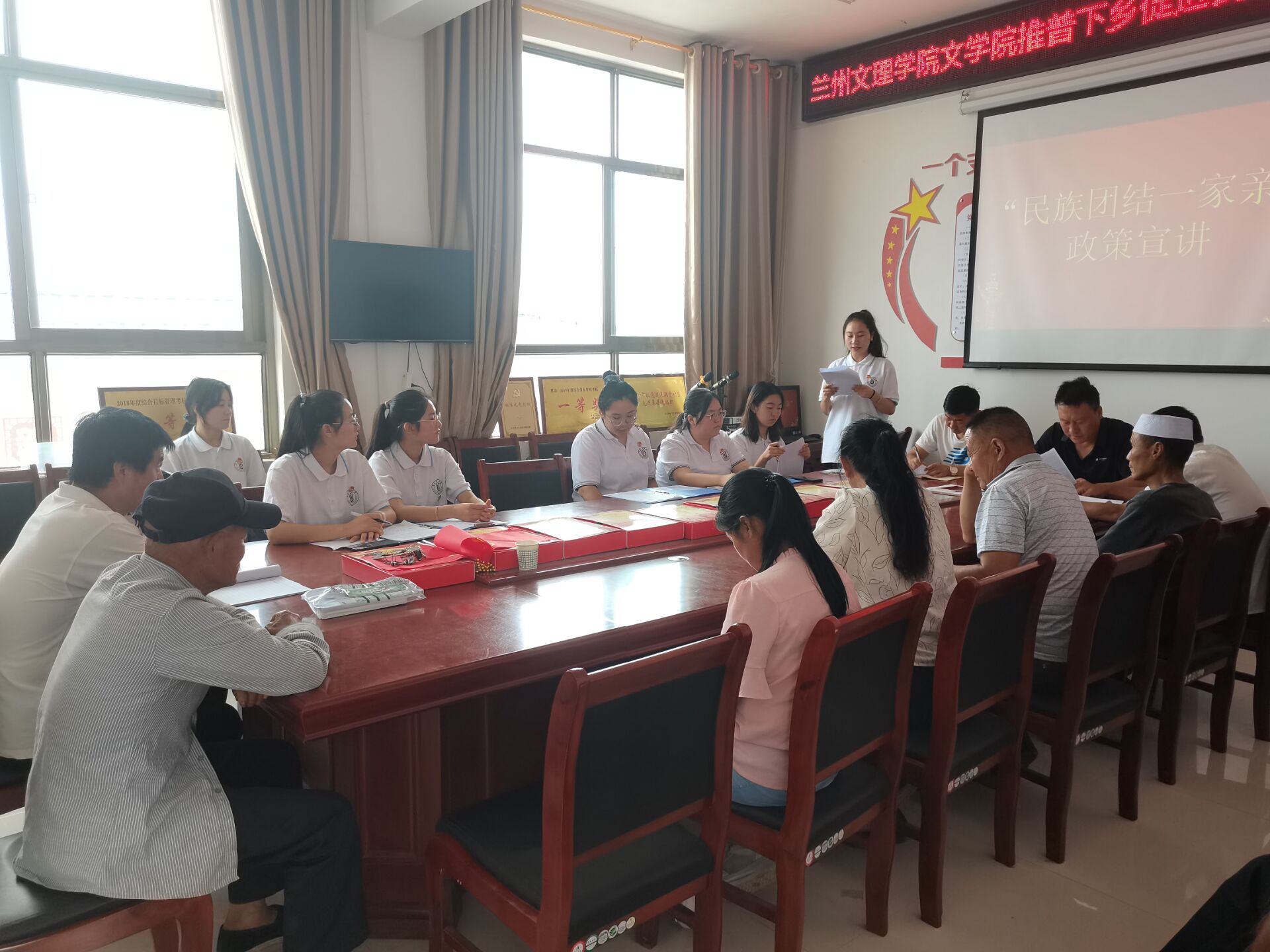 政策宣讲,上传下达。在经过短暂的紧张筹备后,系列活动如期召开。首先党崾岘村村支部书记方百智介绍了此次活动的目的及意义,然后实践团队员们先后进行了“民族团结一家亲”政策宣讲等活动。结合实践团所做的民族政策落实情况调研结果,“民族团结一家亲”政策宣讲获得圆满成功。有参会人员表示,这次宣讲这次宣讲坚定了当地干部作为中国共产党人维护民族平等团结的信心和决心。同时,实践团队员们也进一步意识到了结合当地实际开展活动的必要性。