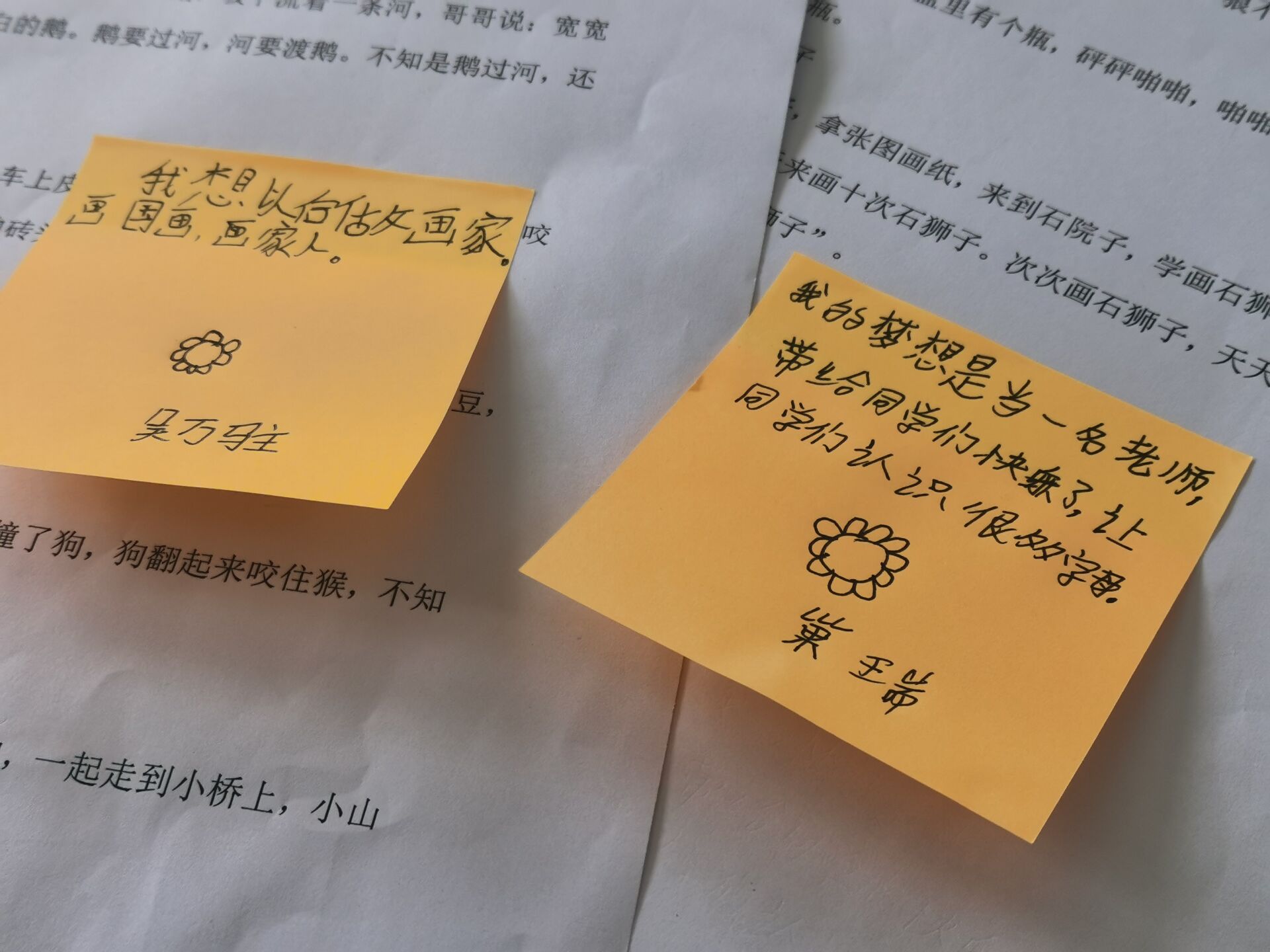 推普送课,助梦飞翔。课堂上,实践团成员们要求学生写下自己梦想,他们有的希望当一名警察,有的希望当一名画家,还有的希望当一名老师。其中学生司润欣写道:“每个人都有梦想,我也不例外,我的梦想是当一位老师。都说老师像一个辛勤的园丁,浇灌着我们这些花朵;老师像一个蜡烛,燃烧了自己照亮了我们;老师是伟大的,所以我想当老师。”这里的学生非常努力,课堂上表现的很好,看着学生们求知的眼神,实践团成员们希望能将自己所学的都教给他们,世上无难事,只怕有心人,也希望孩子们能实现他们梦想,为祖国的发展添砖加瓦。