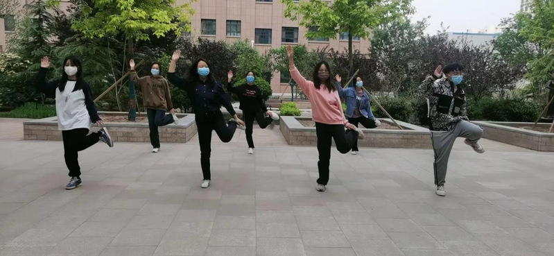 当日19时,辅导员老师和学生们在教学楼下集合。在确定戴好口罩、保持好安全距离后,同学们跟随着音乐节奏,舞出了青春的活力,舞出了学院的风采,舞出了校园内一道亮丽的风景线。